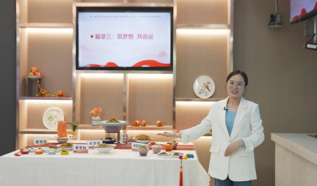 在中职学段,来自南宁市第一职业技术学校的覃素媛教师团队以“各民族交融发展”为题,开篇以“探起源 共团结”为切入点,从广西的米粉入手,着眼于米粉的起源,引出“兴产业 共发展”,梳理了广西米粉的创新发展和产业化发展。最后升华于同学们“筑梦想 共命运”的职业选择。